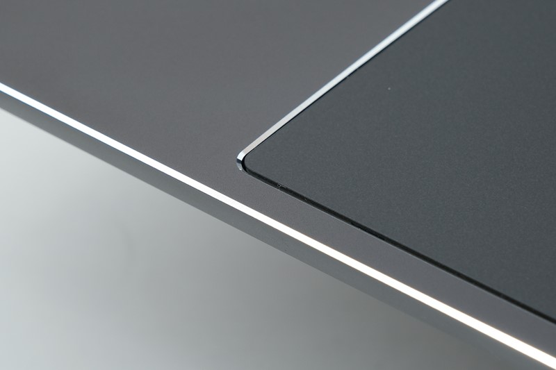 Laptop nije u potpunosti moguće rastvoriti jednom rukom zbog kombinacije tvrdoće šarki i nedovoljno teške baze. Računalo je inače teško 1,86 kg što ga svrstava među lakše 15-inčne uređaje visokih performansi, a slična je situacija s debljinom koja varira od 16,72 do 19 mm. Ekran nije moguće rastvoriti potpuno, odnosno, do kuta od 180 stupnjeva, no maksimalni hod dovoljan je za ugodan kut gledanja u većini situacija. Rubovi ekrana su prilično tanki, u skladu sa smjernicama modernog dizajna, a u gornju letvicu koja je nešto deblja smještena je web kamera razlučivosti HD i prosječne kvalitete. Kamera je opremljena s mehaničkim poklopcem kojim je možemo blokirati.